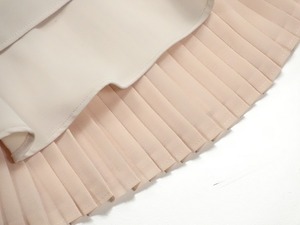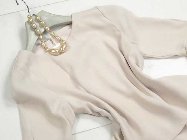 裾プリーツ幅広袖のチュニック。上質なカットソーのチュニック。淡いサーモンピンクが上品な印象に。袖は幅広でお洒落なデザイン。スパッツやジーンズなどいろいろなコーディネートを単身でいただけます。ファスナーなしのかぶるタイプ。首元フック止め。裏地有。