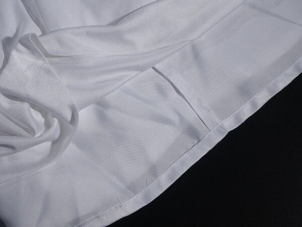 ジャージー素材スパンコール仕様のロング丈半袖ワンピ-ス。トップスは綺麗なドレープ。袖は半袖丈のフリル仕立て。つややかな白のジャージ素材に小さな丸いスパンコールがキラキラ輝いています。素材は伸縮性のあるジャージー素材。肌触りも良く着やすい一着です。背中ファスナー。裏地有。