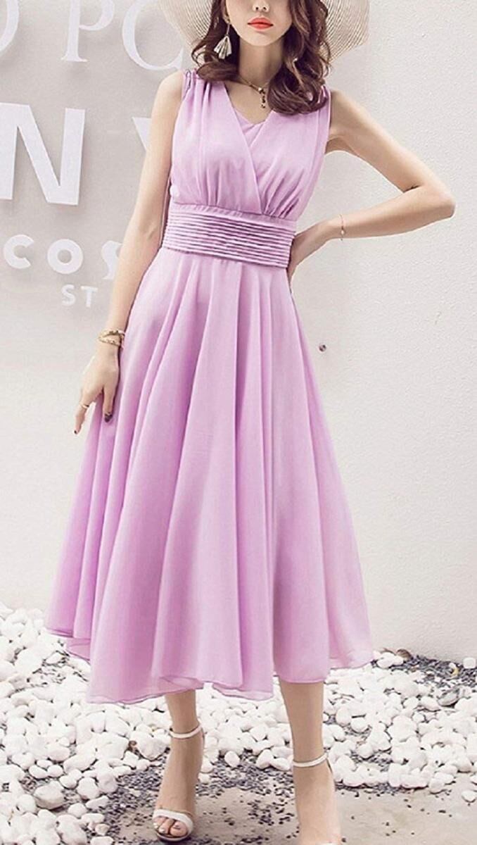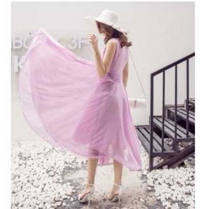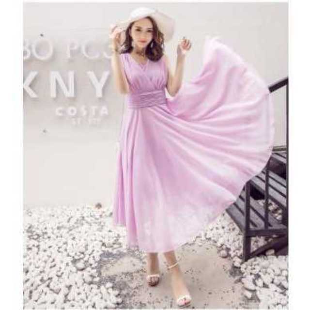 ノースリ-ブマキシ丈ワンピ-ス。柔らかいシフォン素材をたっぷりと使用。着やすくこの一枚でとてもエレガントになります!!胸元のタックと、ウエストの切り返しがアクセントに。パーティやリゾートと、どんなシーンにも活躍してくれる女性度UP間違いなしの商品です。 右脇ファスナ-。裏地あり。