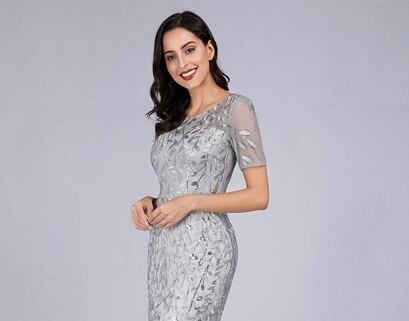 マーメイドパーティ-ロングドレスです。全体にビジュ-が施されシルバ-の光沢が高級感を醸しだしてくれてます。とてもエレガントです。着心地もフィット感があり抜群です。パーティやライブ、イベント、結婚式など、どんなシーンでも活躍してくれる一着です。裏地有。背中ファスナー有。
