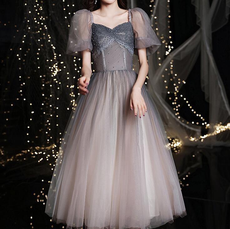 グラデーションが美しいチュールのドレス。淡いピンクのサテン地の上にネイビーカラーのグラデーションがかかったチュールをたっぷりと重ね豪華な雰囲気に。胸元には小さなビジューをあしらい、袖はふっくら丸いフォルムが可愛いチュールを使用しています。生地をたっぷりと使用しているのでボリューム感があり、パーティやイベント、結婚式など、様々なシーンで、気品のある印象を与えてくれる一着となっています。背中ファスナ-有。胸パット付。