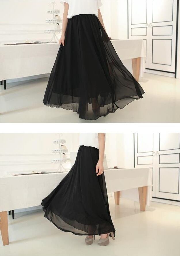 シンプルなシフォンのロングスカ-トです。歩く度にふんわりと揺れる裾が視線を集めます。!リゾ-トコ-デに最適!裏地付。他の色も出品しています。