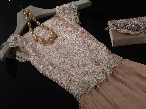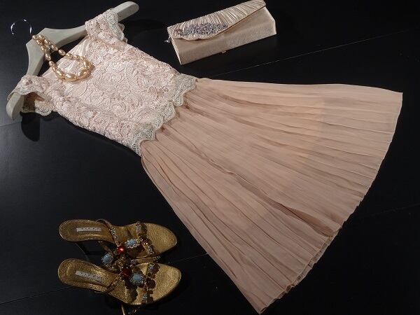 花柄刺繍とプリ-ツの贅沢なワンピ-スです。普段着はもちろんパ-ティ-や結婚式にお薦めです。裏地あり。