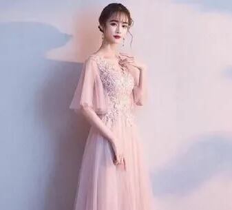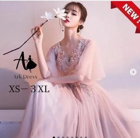 チュール袖フリルのパ-ティ-ロングドレス。ピンクのサテン地の上に同色のチュールを重ねた豪華な仕様。トップス部分は立体刺繍を施し、袖は肩からたっぷりとチュールを使用した広がるデザインで動きやすくなっています。背中はウエスト部分まで編紐掛けなので、バストサイズにゆとりをもって着用いただけます。パーティやイベント、結婚式など、様々なシーンで、気品のある印象を与えてくれる一枚です。裏地有。背中網掛け。腰下ファスナ-有。胸パット付き。