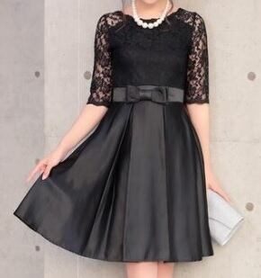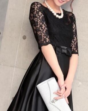 エレガントパ-ティ-ワンピ-スです。気品に満ちたとてもエレガントで上品なひとクラス上をいく一品です。トップス部分のレースがとても上品でエレガントです。裏地有。右サイドファスナ-有。