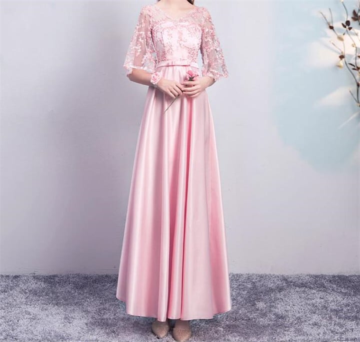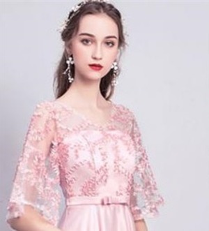 レース切替サテンイブニングロングドレスです。気品に満ちたとてもエレガントで上品なひとクラス上をいく一品です。トップス部分は立体刺繍が施されたレースがサテン地に重ねられ豪華かつ上品でエレガントなドレスです。背中網掛け。背中腰から下ファスナ-有。裏地有。胸パット付き。