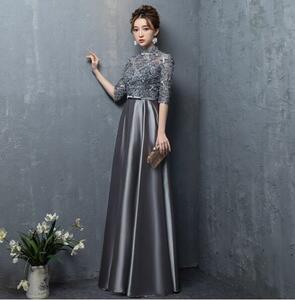 レース切替サテンロングドレスです。気品に満ちたとてもエレガントで上品なひとクラス上をいく一品です。トップス部分は花刺繍が施されたレースがサテン地に重ねられ豪華かつ上品でエレガントなドレスです。背中ファスナ-有。裏地有。胸パット有。