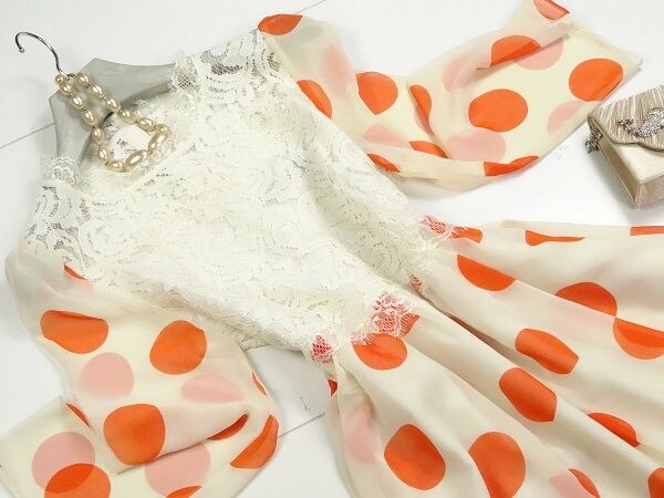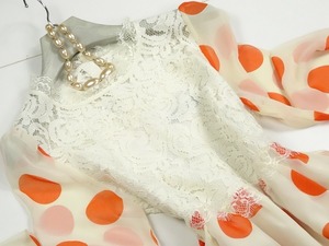 透明感のある素材使いと、繊細なレースがとてもオシャレで、しぐさを優雅に見せてくれる贅沢なお洋服です。上品で優しい大人の女性を表現してくれます。 裏地有り。背中ボタンあり。