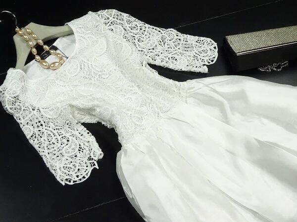 繊細な刺繍レ-スがお洒落で女性らしい美しさを強調した考え抜かれたデザイン!シックな色合いが、いろいろな表情を魅せてくれ、大人の高級感でフェミニンな一着です。裏地有。右脇下ファスナ-有。