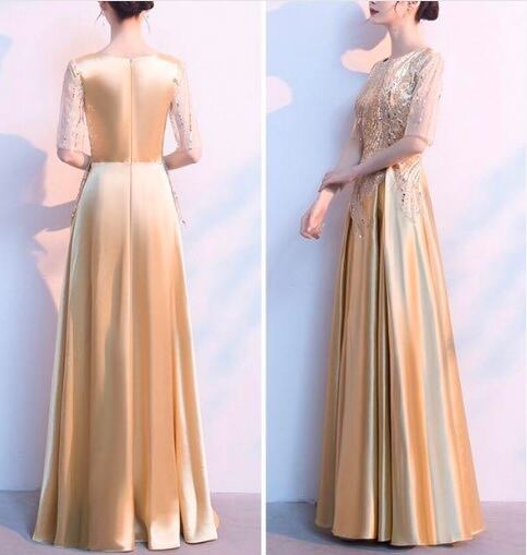 チュールとスパンコールのロングドレス。上半身は、ゴールドイエロ-のサテン地の上に金のスパンコールを金糸で留めた同色のネットチュールをかぶせ、華やかな仕様になっています。スカート部分はゴールイエロ-のサテン地をふんだんに使用しボリューム感を演出。パーティやライブ、イベントなど華やかなシーンに目を引く一着です。背中ファスナー有。裏地付き。