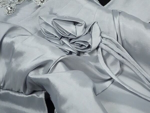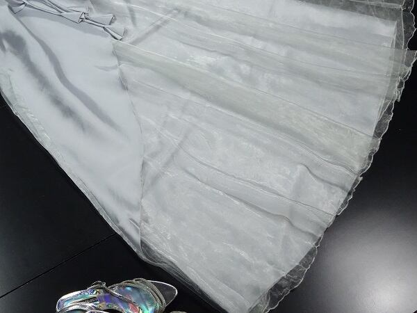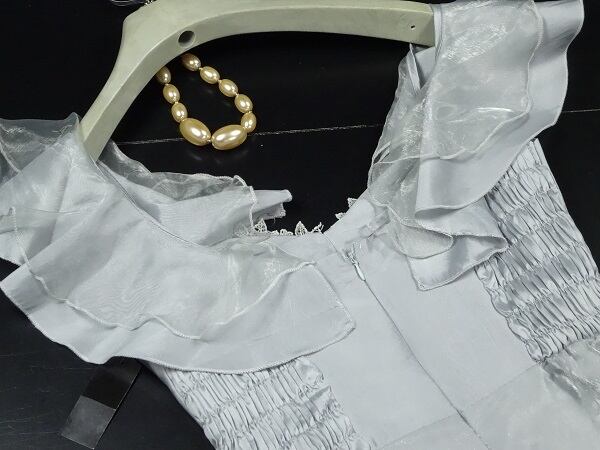 キュートでエレガントなカラ-ロングドレスです。たっぷり使った生地により豪華かつ揺れ感抜群です。可愛らしさと大人のエレガンスの両方を感じさせてくれるデザインです。裏地あり。背中ファスナ-有。