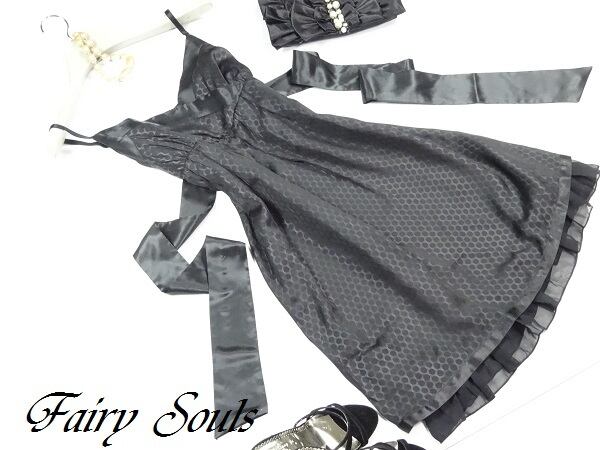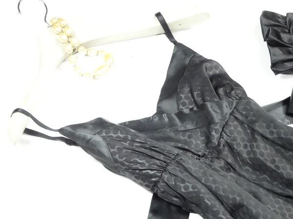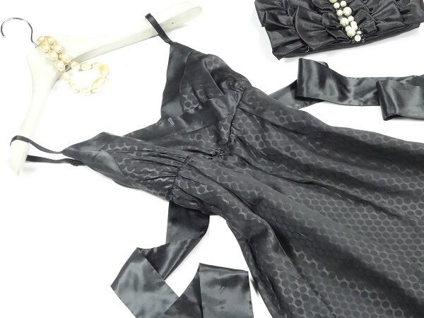上質な生地を使用しエンボス加工を施したシフォンワンピ-スです。薄っすらドットが可愛くてサテンリボンがついています。左サイドファスナ-有。裏地あり。肩紐調整可。