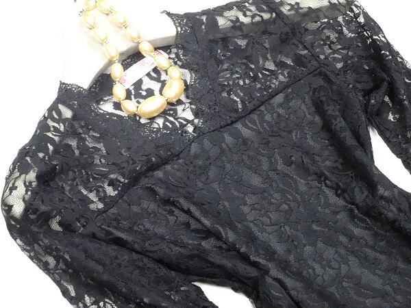 総レ-スで作られたセクシ-な印象のワンピ-スです。袖とデコルテには裏地がないため肌見せ効果で更にセクシ-に!!。裏地は付いていますが、気になる方はインナー着用をお勧めします。裏地有。ファスナーなしのかぶるタイプ。