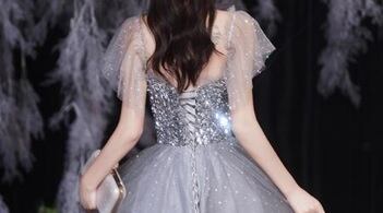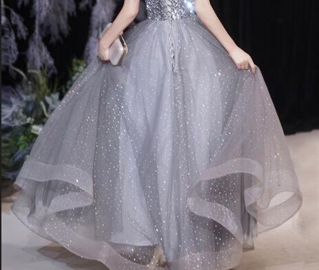 スパンコール飾りパーティーロングドレス。全体的に小さなスパンコールがあしなわれ、サテン地にチュールをかぶせたエレガントなデザインです。パーティやイベント、結婚式など、様々なシーンで、気品のある印象を与えてくれる一枚です。背中編み紐掛け。腰下ファスナー有。胸パット付。裏地有。