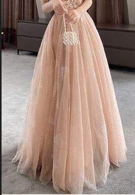胸元プリ-ツパーティーロングドレス。胸元がチュ-ルのプリ-ツになっていて全体的に小さなスパンコールがあしなわれ、サテン地にチュールを2枚かぶせたエレガントなデザインです。パーティやイベント、結婚式など、様々なシーンで、気品のある印象を与えてくれる一枚です。背中編み紐掛け。腰下ファスナー有。胸パット付。裏地有。