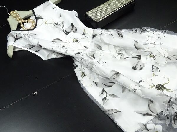 お洒落なプリントに柔らかいシフォン素材でとても着やすくこの一枚でとてもエレガントなマキシ丈ワンピ-スです!!女性度UP間違いなしの商品です。 背中サイドファスナ-有。裏地あり。