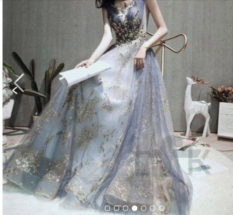 チュールとスパンコールのロングドレス。白のサテン地の上にチュール地を二重に重ね、金や色々な色のスパンコールとビーズをふんだんにあしらった大変豪華で美しい仕様。デコルテの透け感がとても美しく大人の女性を醸し出してくれるエレガントなデザイン。全体にゴールドのスパンコールがちりばめられたデザイン性のあるスタイルがとても魅力的な一着です。華やかであり、また上品な印象に仕上げられています。背中腰下まで編み紐掛け ファスナ-なし。胸パット付き。結婚式の二次会やお色直しに最適です。