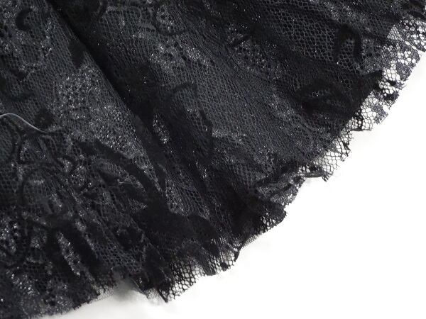 黒のエレガントなワンピ-スです。デザイン性のあるスタイルがとても魅力的な一着です。可愛いデザインで全体的に優しい感じに仕上げられています。裏地あり。背中ファスナ-有。