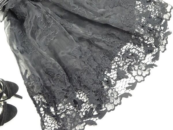 スッキリしたAラインデザインで透け感のあるオ-ガンジ-に素敵なカットワ-クが大注目ファミニンでいて上品なワンピ-スです。ファスナーなし(かぶるタイプ)。裏地有。