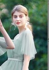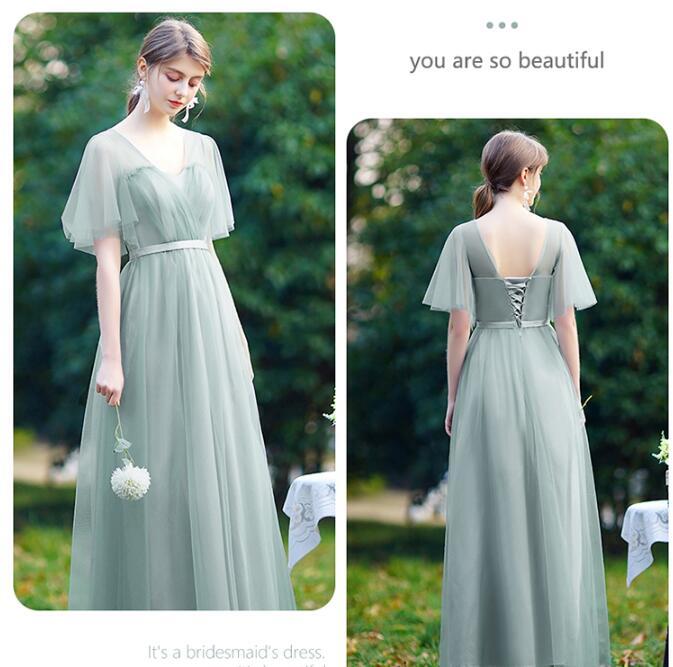 チュールロング丈パーティードレス。シルバ-サテン地の上にシックなペパーミントグリーンのチュールをかぶせています。胸元はバストの上でフリルをとり、ウエストにかけて中央にタックをとった華やかなデザイン。背中は腰まで編み紐掛けになっているので、編み紐の締め具合でバストサイズを調整いただけます。袖は肩から袖先にかけて広がったネットチュールを使用。フェミニンでかつエレガントな雰囲気に。パーティやイベント、結婚式など、様々なシーンで、気品のある印象を与えてくれる一枚です。裏地有。背中編み紐掛け。腰下ファスナ-有。胸パット付。