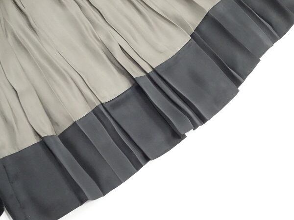 2wayプリーツスカ-トです。上品な膝丈スカートです。風に優しくなびき、歩くたびに着る人の足に目がいく一着です。裏地なし。ファスナ-なし。