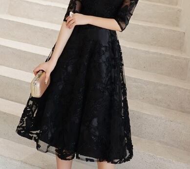 チュ-ルレースミディアムパ-ティ-ドレスです。トレンド感たっぷりリボン刺繍のエレガントなドレスです。ハイウエストのリボン切替で脚長効果のあるデザイン性のあるスタイルがとても魅力的な一着です。全体的に女性度UPに仕上げられています。背中ファスナ-有。胸パット付き。裏地有。