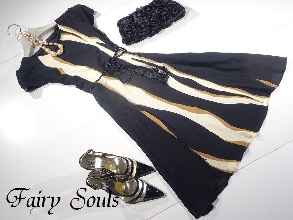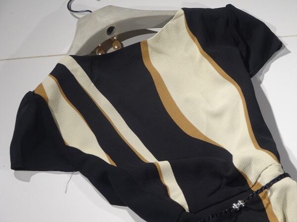 お洒落な色使いでク-ルに、上品でいてつつましやかな華やかさを感じさせてくれるデザインは、お呼ばれ、デート、結婚式の二次会、コンサート等、どんなシーンでも活躍してくれる貴重な一着です。右脇下ファスナー有。裏地有。