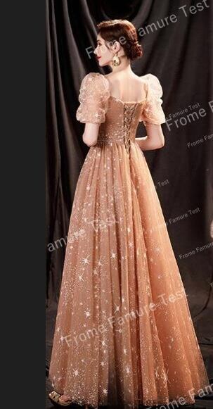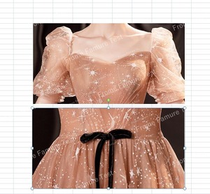 ハイウエストチュールイブニングドレスです。ブラウンのサテン地に同色のチュールを2枚重ね全体的にフェミニンでエレガントな雰囲気に。リボン配色ハイウエストで脚長効果もあり、下半身はチュールをたっぷりと使用しゴージャスな印象に。パーティやイベント、結婚式など、様々なシーンで、気品のある印象を与えてくれる一枚です。裏地なし(チュールとサテンの2枚重ね)。背中編み紐掛け。胸パット付。