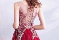 立体刺繍パーティ-ミディアムドレスです。デコルテの透け感がとても美しく大人の女性を醸し出してくれるエレガントなミディアム丈ドレスです。トップス部分には金糸・銀糸の刺繍が施されデザイン性のあるスタイルがとても魅力的な一着です。全体的に優しい感じに仕上げられています。背中網掛け。背中腰下ファスナ-有。胸パット付き。裏地有。