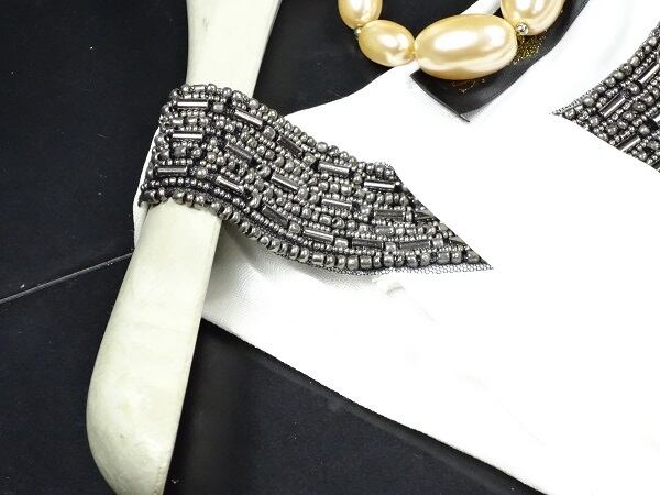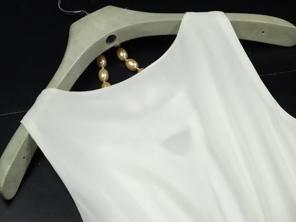 甘さと柔和さが満ちた清楚なプリ-ツワンピ-スです。首元のビ-ズがネックレスのようでとても素敵に見えます。襟から裾に向かって広がり優雅なプリ-ツとなり女性度UP間違いなしのとても素敵な一着です。大人っぽい色合いで結婚式やパ-ティ-にもお薦めの一着です。ファスナーなし(かぶるタイプ)。裏地有。ベルト付き。