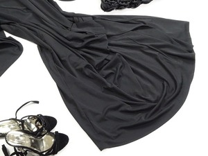腰あたりのドレ-プがとても女性らしいシルエットのゴ-ジャスなワンピ-スドレスです。上品かつエレガントお薦めの一着です。裏地なし。ファスナ-なし(かぶるタイプ)。