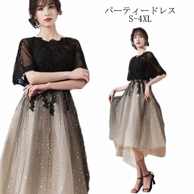 チュールと立体刺繍が施されたレースのシックなロングドレスです。薄いゴールドピンクのサテン地の上に2枚のチュールをかぶせ、上半身と袖はレース仕様になっています。スカ-ト部分は黒のチュ-ルにシルバ-とゴールドの星や三日月のビジュ-が施されシックで品があり華やかな、コンサート、ライブ、結婚式の二次会、パーティにとどんなシーンにも活躍してくれる一着です。裏地あり。背中網掛け。腰下ファスナ-有。胸パット付き。