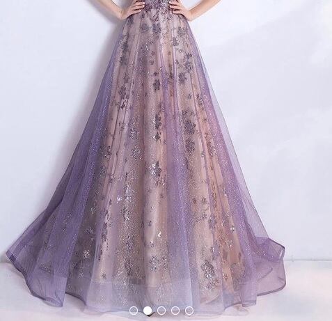 スパンコールオフショルダ-ロングドレスです。サテン地の上にチュール地を二重に重ね、スパンコールをふんだんにあしらった大変豪華で美しい仕様。全体にスパンコールがちりばめられたデザイン性のあるスタイルがとても魅力的な一着です。前より後ろの丈が長いフィッシュテールで華やかであり、また上品な印象に仕上げられています。結婚式の二次会やお色直しに最適です。背中編み紐掛け。胸パット付き。裏地有。