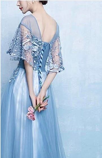 チュ-ルパ-ティ-ロングドレスです。肩から袖にかけては透けとてもエレガントで全体的にサテン地にチュ-ルが重ねられた優しいデザインです。背中が網掛けなので調整具合でM~Lサイズは大丈夫です。パーティやイベント、結婚式など、様々なシーンで、気品のある印象を与えてくれる一枚です。裏地あり。背中網掛け。ファスナ-なし。胸パット付。
