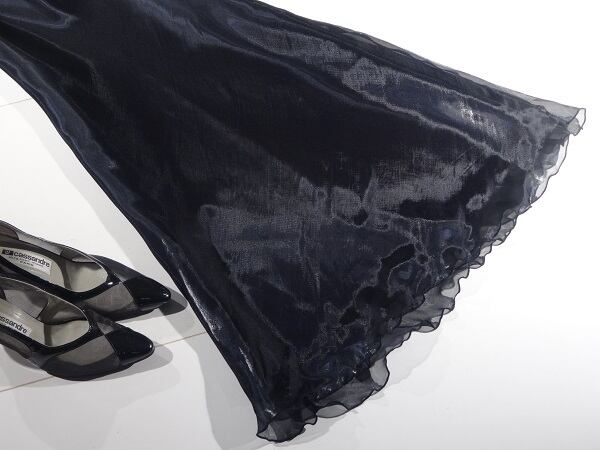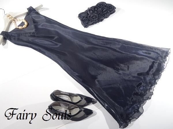 光沢オ-ガンジ-フォ-マルパ-ティ-ドレスです。光沢のあるとても軽い生地を使用した綺麗なドレスです。裏地付。ファスナ-なし(かぶるタイプ)。