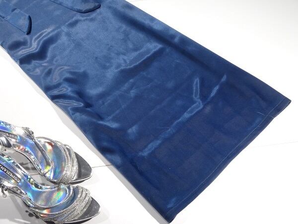 つるつるサテン光沢ワンピ-スです。薄手の柔らかいサテン素材で着心地がとても良く強い光沢とセクシ-なデザインです。右サイドスリット32cmでエレガントでフェミニンな一着です。裏地なし。ファスナ-なし(かぶるタイプ)。