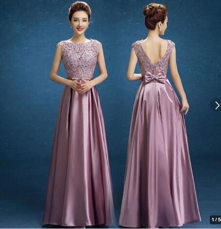 レース切替バックリボンサテンロングドレスです。気品に満ちたとてもエレガントで上品なひとクラス上をいく一品です。トップス部分は花刺繍が施されたレースがサテン地に重ねられ豪華かつ上品でエレガントなドレスです。背中ファスナ-有。胸カップ付き。裏地有。バックリボン取り外し可。