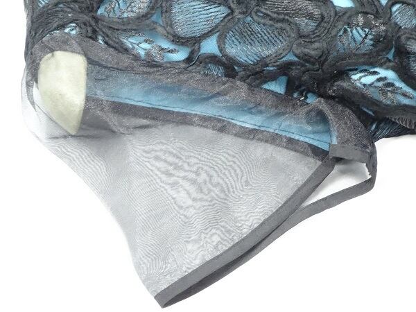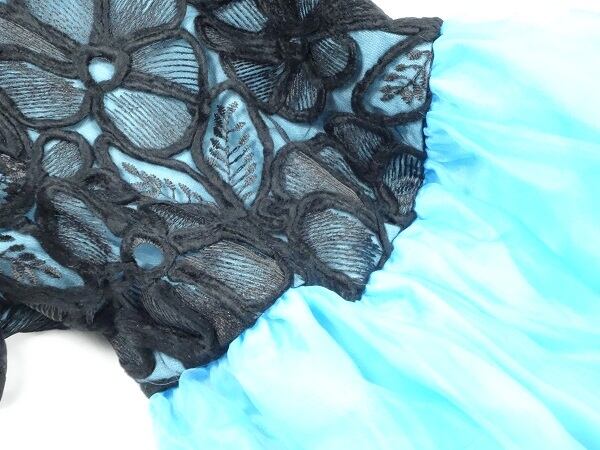 透明感のある素材で繊細な刺繍がとてもお洒落でしぐさわ優雅に見せてくれます。右脇下ファスナ-有。裏地有。
