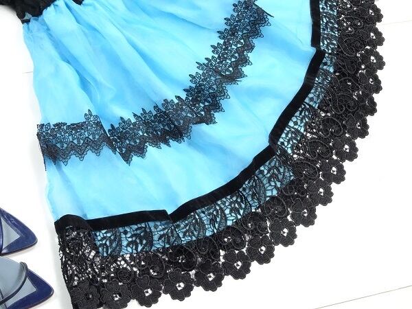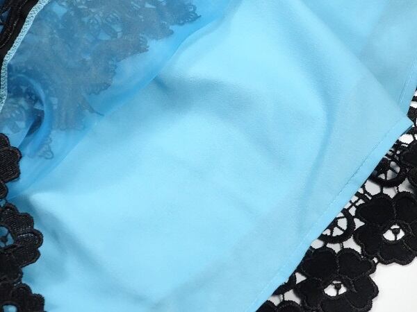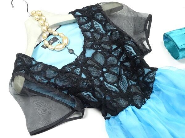 透明感のある素材で繊細な刺繍がとてもお洒落でしぐさわ優雅に見せてくれます。右脇下ファスナ-有。裏地有。