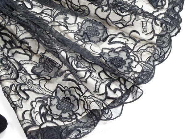 繊細な刺繍がとても魅力的でファッション性に優れた豪華なワンピ-スです。注目度抜群だと思います。左脇下ファスナ-有。裏地あり。