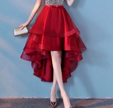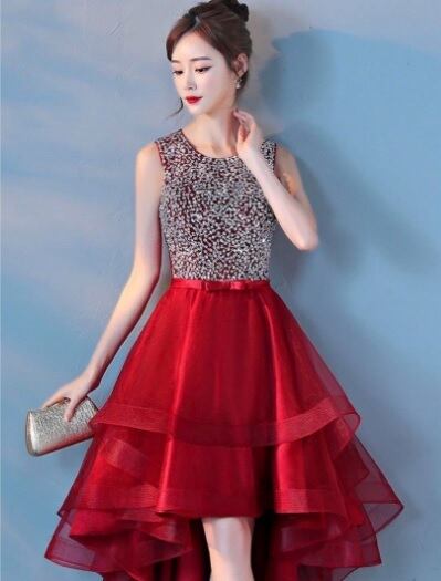 トップス部分がビジュ-で飾られた美しいフィッシュテ-ルパ-ティ-ドレスです。ウエストからスカート裾までのとても綺麗なシルエットが揺れるごとに着る人の足元を美しく見せてくれる豪華なドレスです。着丈の前が短く後ろが長いフィッシュテ-ルのデザインです。パーティやライブ、イベント、結婚式など、どんなシーンでも活躍してくれる一着です。背中ファスナー有。裏地付。