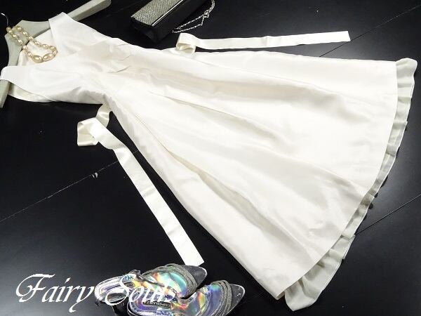 キュ-トさとモ-ド感を加え絶妙なテイストの着こなしを叶える美シルエットなワンピ-スです。光沢のあるワンピ-スで大人の上品な色気を感じさせます。裏地あり。左脇下ファスナ-有。