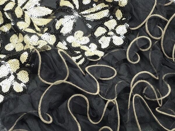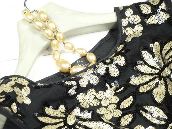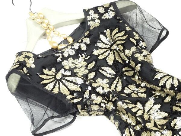透明感ある素材使いと、存在感際立つコ-ド刺繍がとてもオシャレで、しぐさを優雅に見せてくれる贅沢なお洋服です!色々な場面で貴方を輝かせてくれるでしょう。左脇下ファスナ-有。裏地あり。