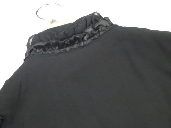 配色がとても美しいエレガントなワンピ-スです。デザイン性のあるスタイルが魅力的。胸元のフリルがとても豪華です。裏地あり。左脇下ファスナ-有。
