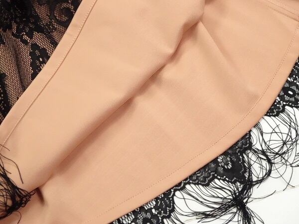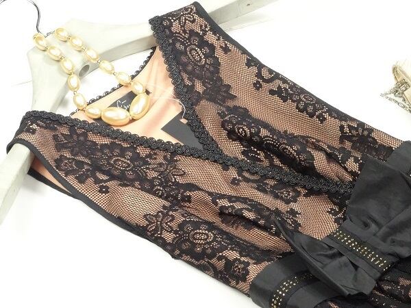 花刺繍総レースウエストリボンのワンピース。カシュクール風の襟元にはレースのバイアスをほどこし、裾はレースのフリンジが豪華な印象に。チュールネットには全体に花の刺繍があしらわれ、ウエストのスパンコール付き、幅広大きなリボンがアクセントになっています。ちょっとおしゃれな普段着として、またパーティやイベント、結婚式などにも活躍してくれる一着です。左脇下ファスナー。裏地有り。