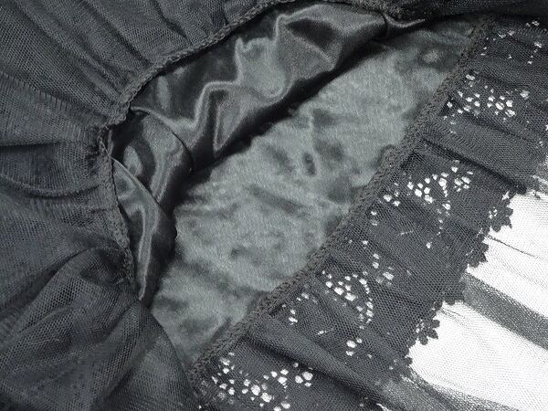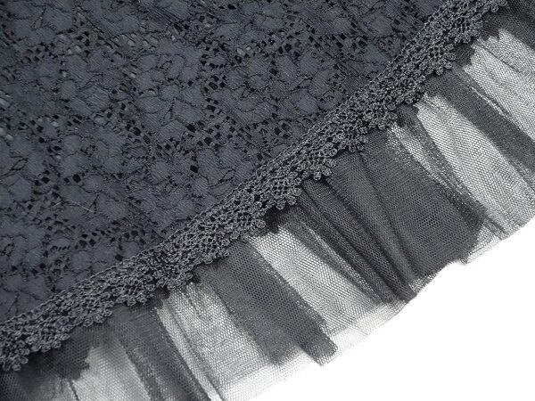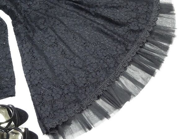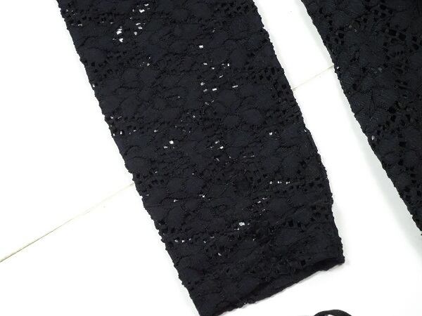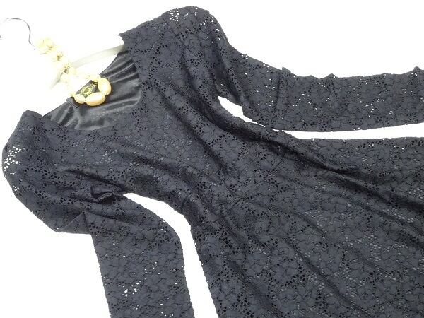 総透かしレース黒のワンピース。透かし彫りの花柄レ-スがシックでフェミニン。袖に透け感があるので上品な女性を表現してくれます。右側にファスナ-有り。裏地付。