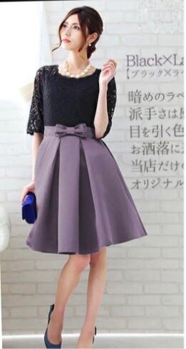 エレガントパ-ティ-ワンピ-スです。気品に満ちたとてもエレガントで上品なひとクラス上をいく一品です。トップス部分のレースがとても上品でエレガントです。裏地有。左サイドファスナ-有。