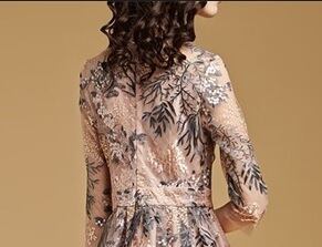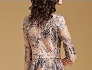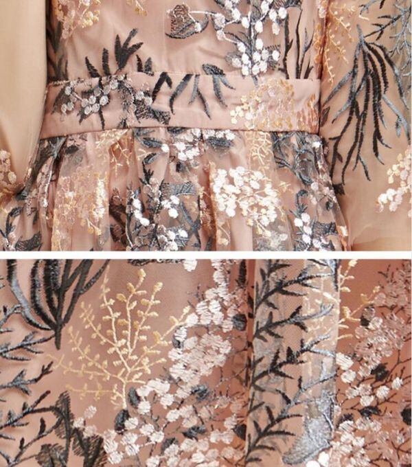 ラベンダー色ボタニカル刺繍の上質ワンピースです。やさしいラベンダーのチュール地にカラフルなボタニカル刺繍をほどこした可愛らしいデザインで後ろの丈が少し長いです。透け感がキュートなセクシー感を演出。優しい感じのワンピ-スです。背中ファスナーあり。裏地あり。