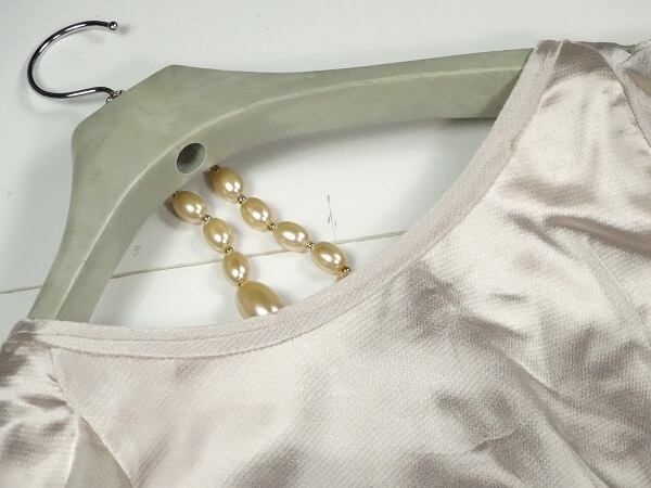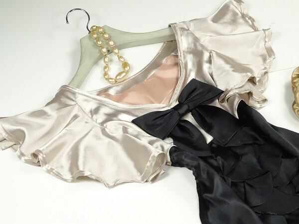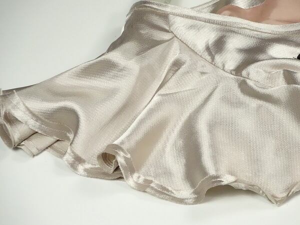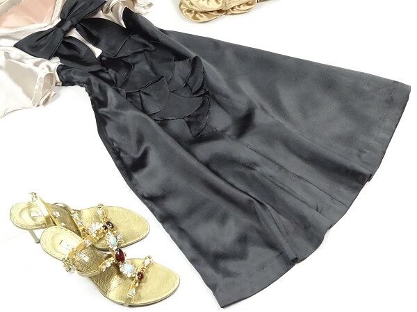 光沢のあるサテン生地でつるつるした肌触りがとても心地良い高級感たっぷりの上品なワンピ-スです。注目度抜群です。裏地有。右脇下ファスナ-有。