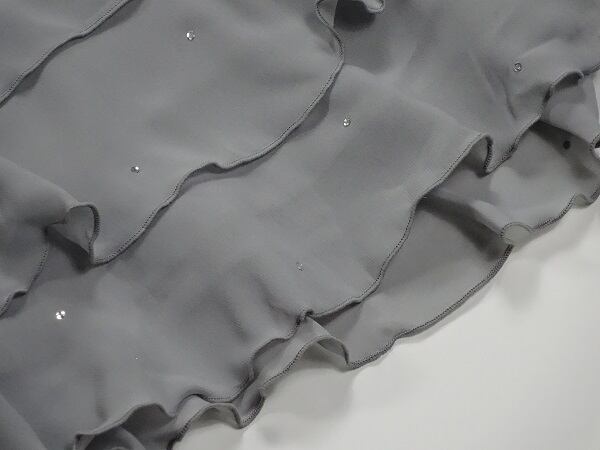 上質な素材感の女性度アップパ-ティ-ドレスワンピです。高級感たっぷりの上品な一品です。注目度抜群ですスカ-ト部分のフリルがとても女性らしいです。裏地有。右脇下ファスナ-有。